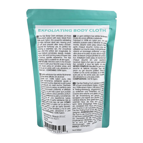 The Kaz Body Cloth exfoliates all those hard-to-reach places with ease. Made from 100% pure nylon, this powerful exfoliating tool helps remove dead skin, leaving your skin soft and smooth after every shower. Designed for full-body use, it's perfect for achieving a seamless tan, the smoothest shave, and the softest skin imaginable. Its unique texture penetrates deeply, revitalizing your skin and turning every shower into a luxurious, spa-like experience. The Kaz exfoliating cloth is suitable for all skin types.