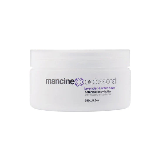 Mancine's lush Lavender & Witch-Hazel Body Butter is formulated by whipping botanical extracts together with shea butter to create a perfect, emollient-rich body butter to care, restore, re-hydrate and soften the skin.