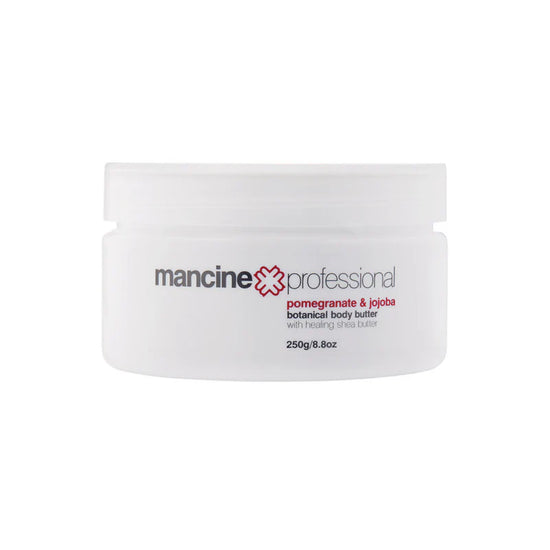 Mancine's lush Pomegranate & Jojoba Body Butter is formulated by whipping botanical extracts together with shea butter to create a perfect, emollient-rich body butter to care, restore, re-hydrate and soften the skin.
